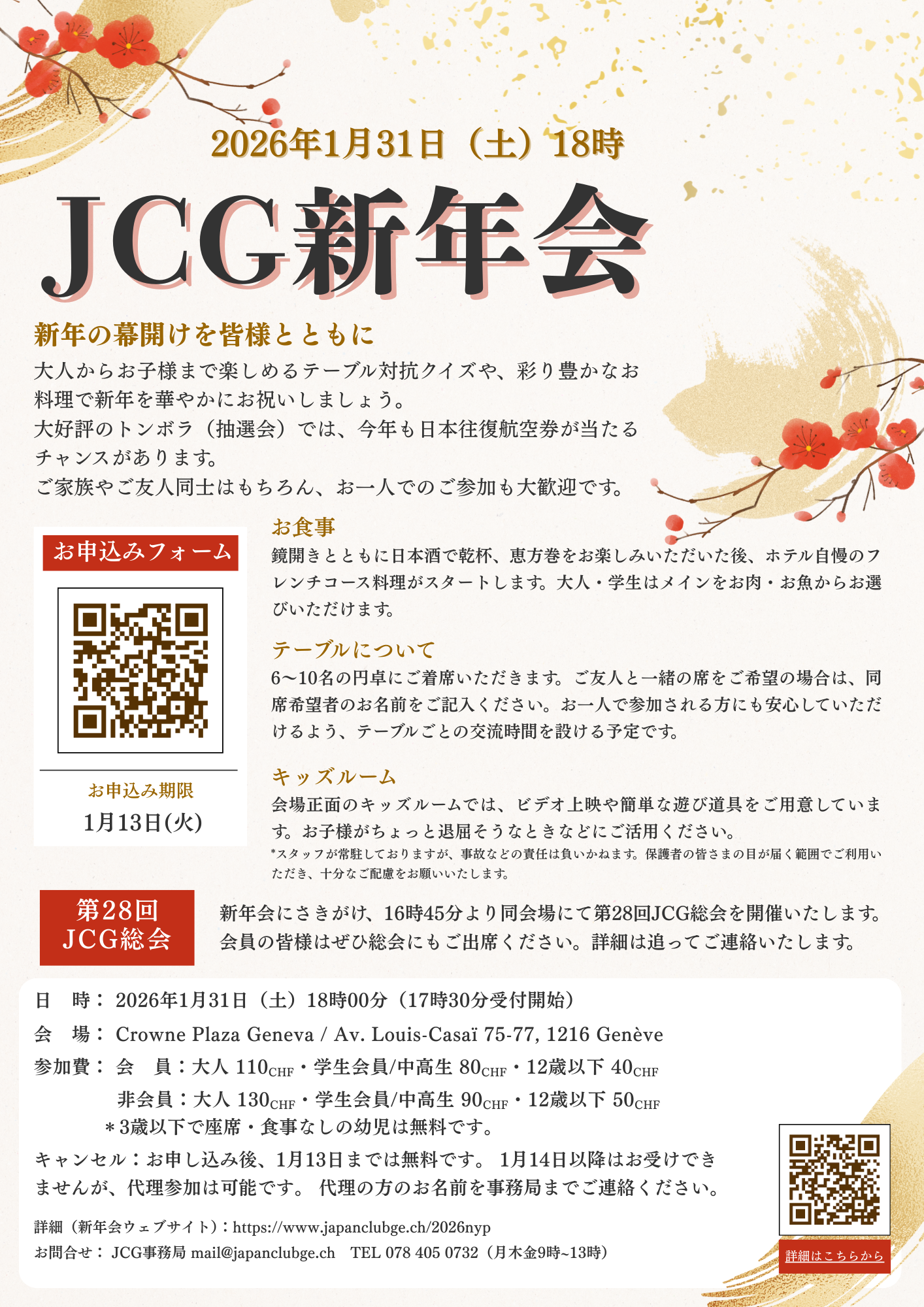参加費: 会 員:大人 110CHF 学生会員/中高生 80CHF 12歳以下 40CHF