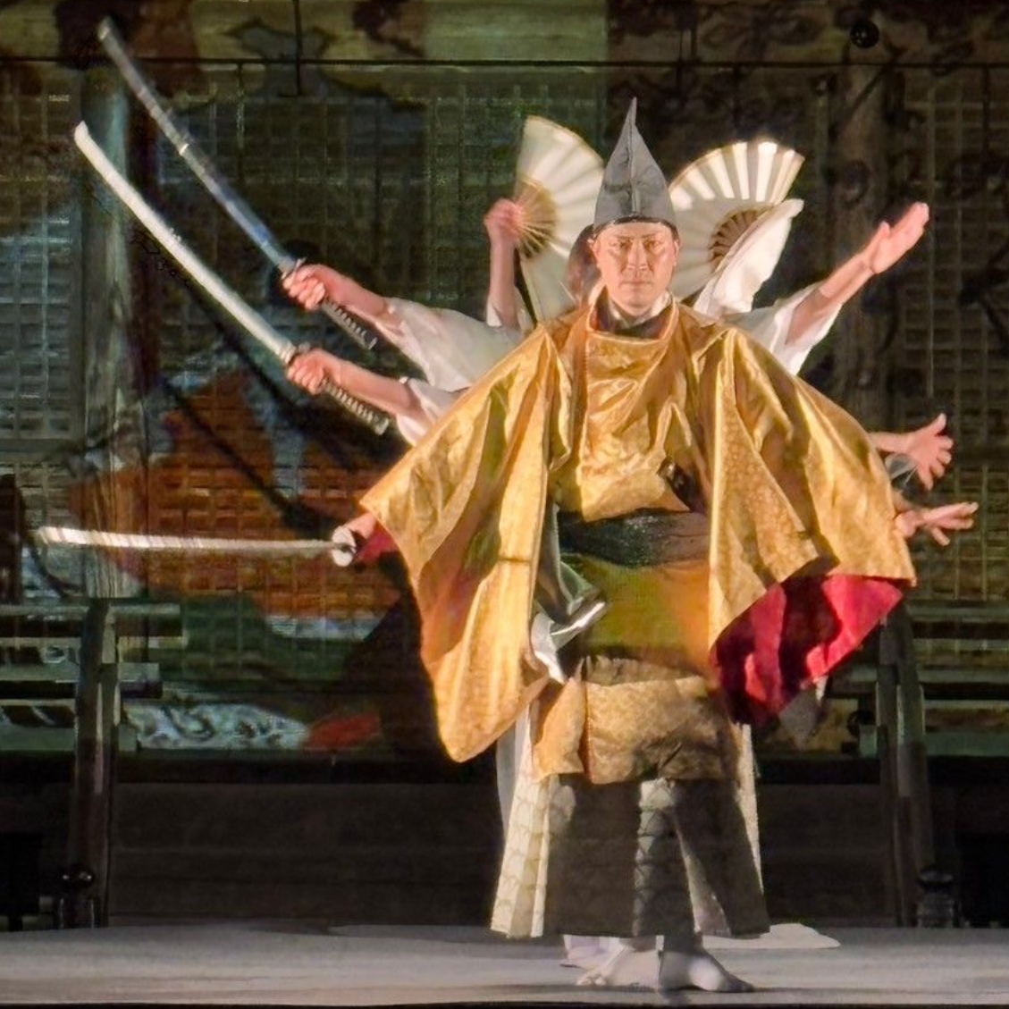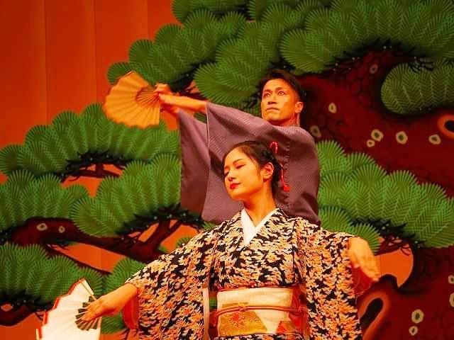 扇子を用いた演目。日本舞踊の動きで、厳かな雰囲気で舞う。 - 剣術(天地)/ サムライ同士の戦いの演目。「武力での勝ち負け」ではなく、「刀を通して心で繋がる」ことを表す。勝ち負けにこだわっていたサムライ同士が、お互いを認め、最終的にはそれぞれで高みを目指すという心の成長を描く。「平和」を題材にもしている。