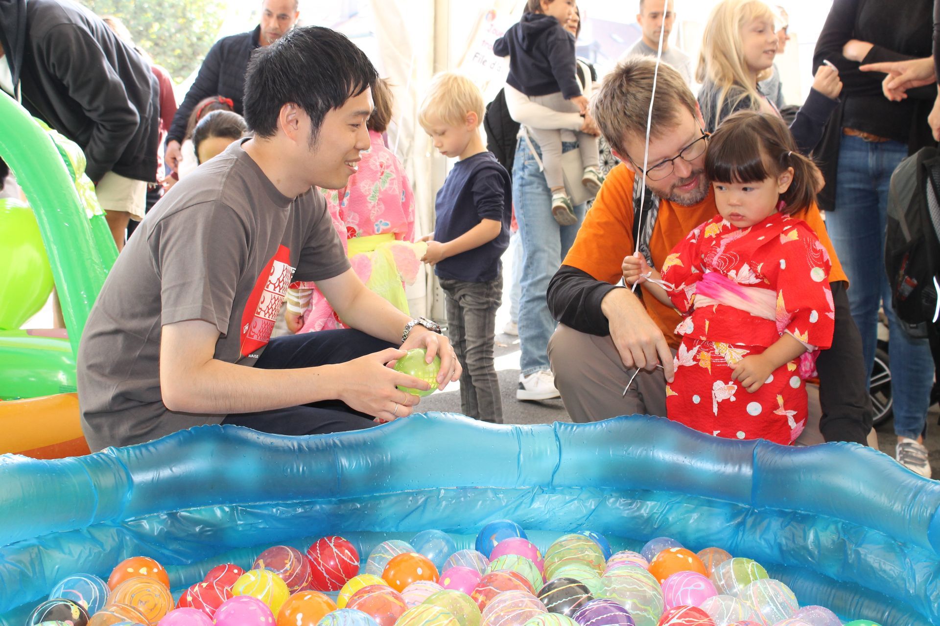 Venez à l’espace des enfants pour pêcher des yo-yos et attraper des poissons rouges en plastique.Des masques ainsi que des jouets traditionnels japonais, comme le Kendama, sont également en vente.